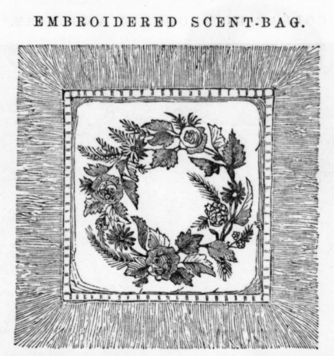 The Victorians took his centuries old practice and made it extra, as usual. Because nothing was too mundane for extravagant decoration, sachets of this time period (rather tritely referred to as “scent bags”) exploded in variety of decorative techniques. Just because it’s being kept in a locked clothes chest doesn’t mean it can’t be covered in intricate embroidery, beads, lace, and fringe. Of course, working class people made simple muslin bags for this, but the more time, skill, and materials one could expend on such a basic item was a display of wealth and leisure, even if no one but the maker ever saw it.