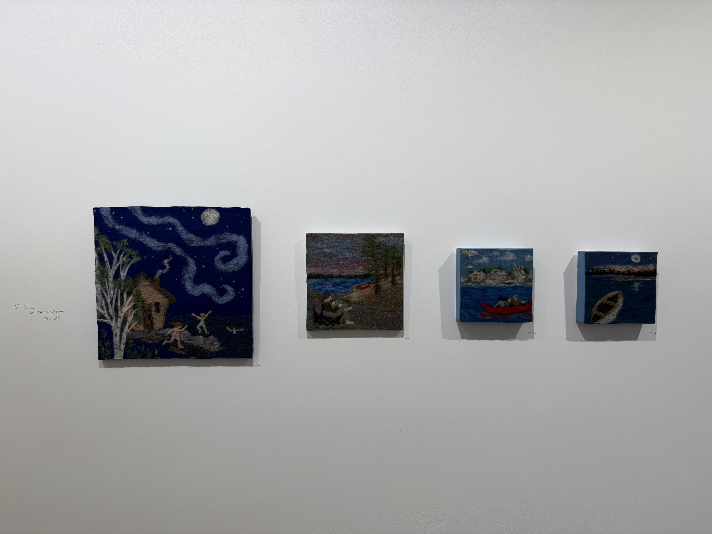 Needle felting is part of my art practice and I love to see what other artists do with it. This set is by Jill Witherspoon. According to the titles of these pieces, they depict scenes of Ontario nature in summer, at Algonquin and the Scarborough Bluffs in particular. The scenes are so lively and fun! Maybe I should do some pieces inspired by my family’s camping trips.